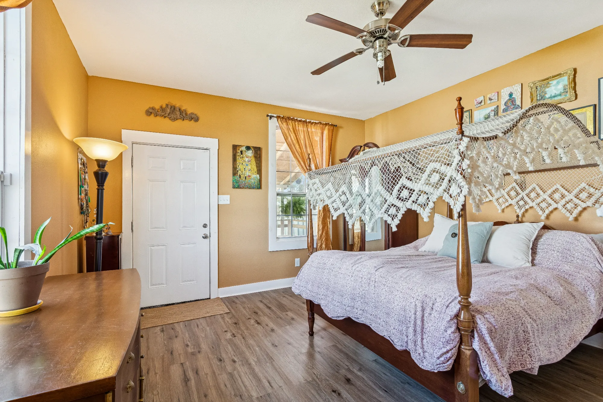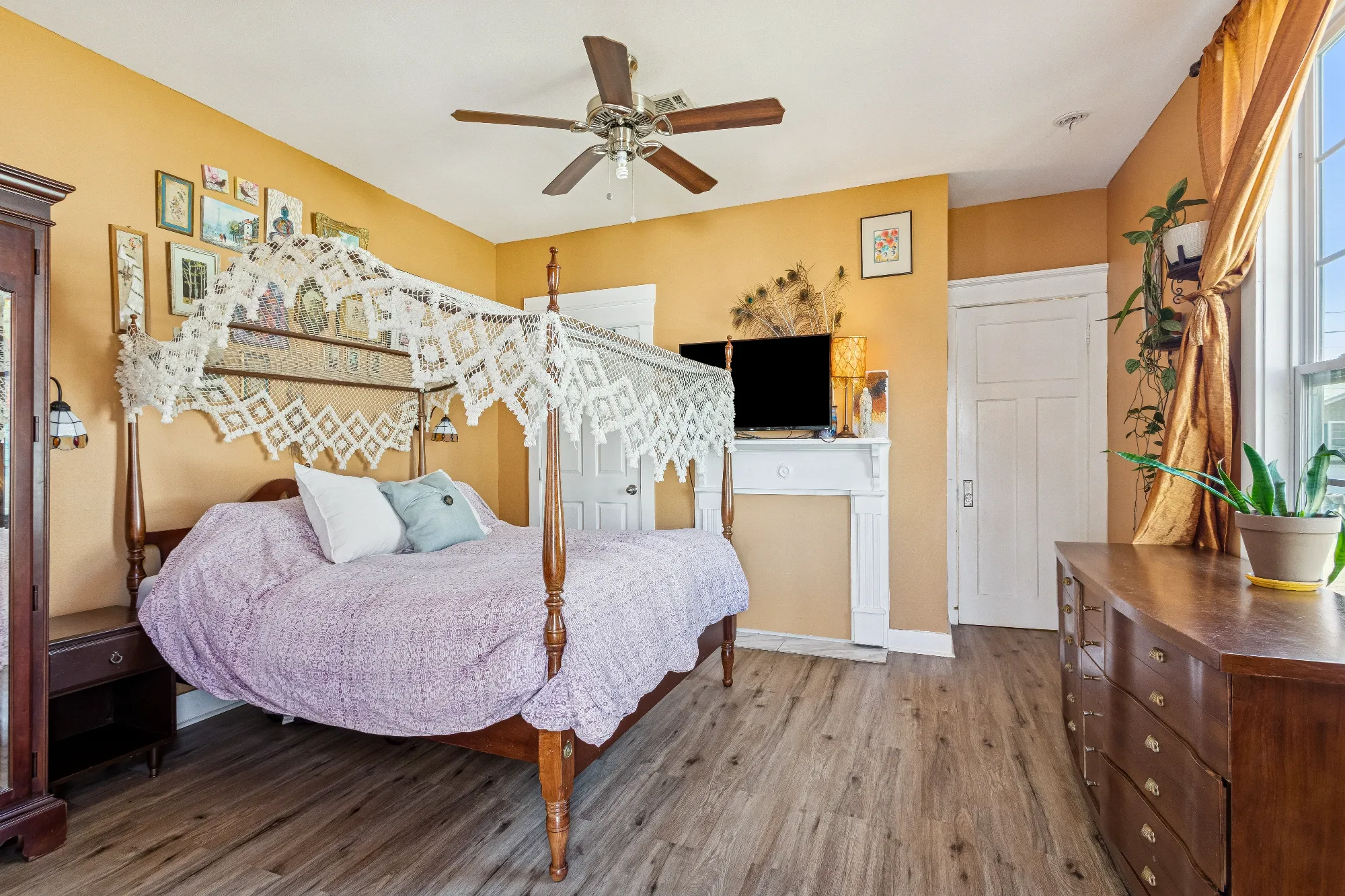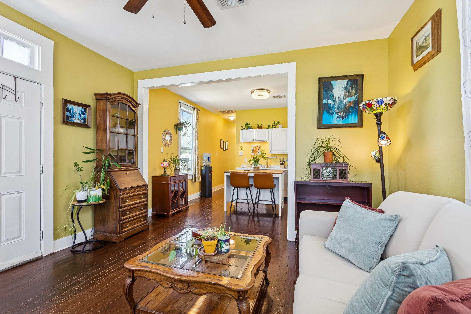 Charming side-hall shotgun home just off the St. Claude Corridor near the Bywater neighborhood. This classic New Orleans home features beautiful hardwood floors, 9-foot ceilings, and an abundance of natural light throughout. The thoughtfully designed layout offers 2 bedrooms and 1 full bath with convenient in home laundry. The kitchen opens seamlessly to the living area, creating an inviting space for everyday living and entertaining. Step outside to a covered back porch overlooking a spacious backyard perfect for relaxing, gardening, or gatherings. Additional features include a storage shed and rear yard access. Roof replaced in 2021. Enjoy all that this lively community has to offer, with popular restaurants, local shops, and neighborhood favorites just moments away.